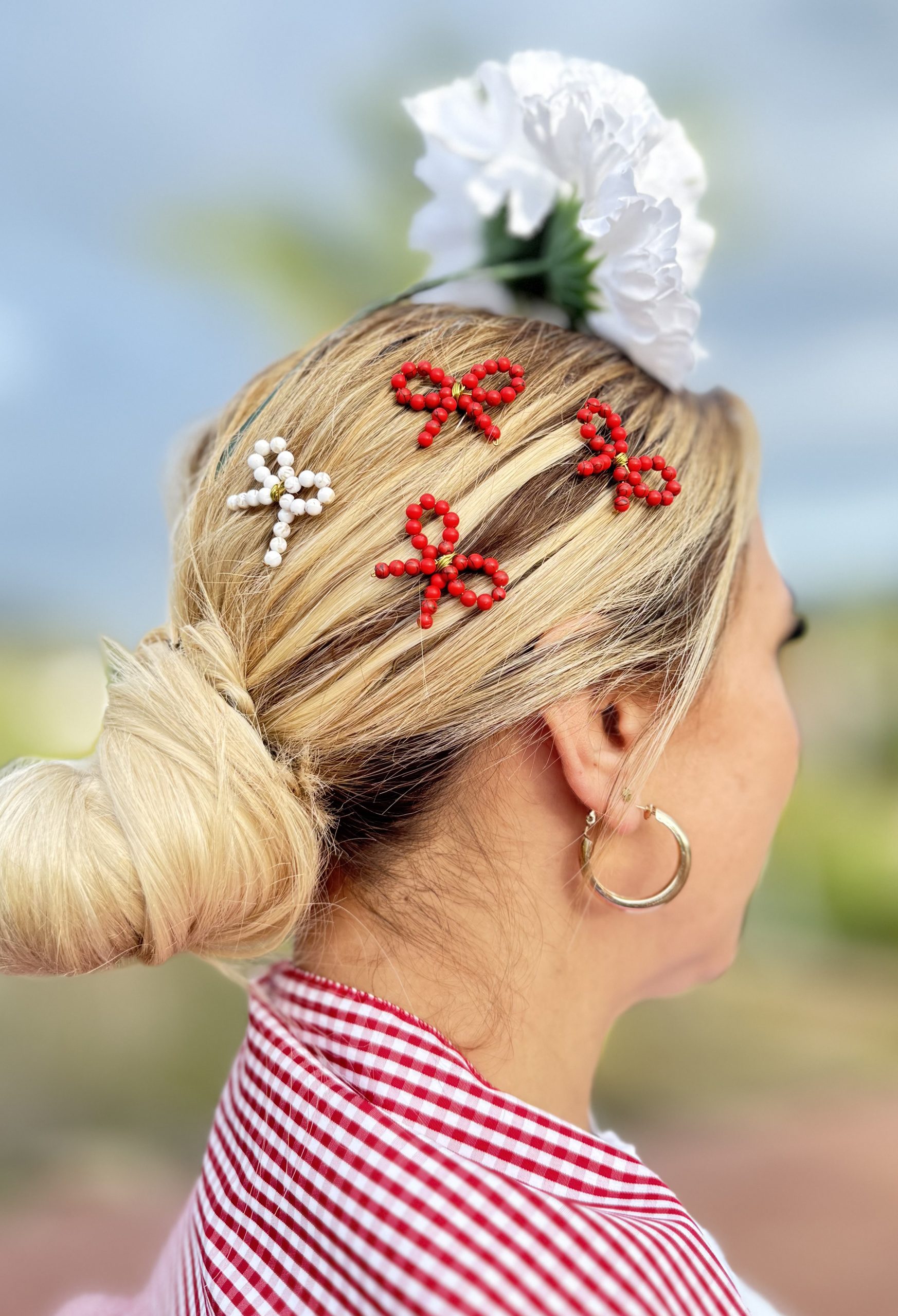 Peinas hechas a mano, elaboradas con piedras de coral. Disponible en una gran gama de colores y tamaño. Se envían 2 unidades, el precio mostrado es para 1 par de lazos.